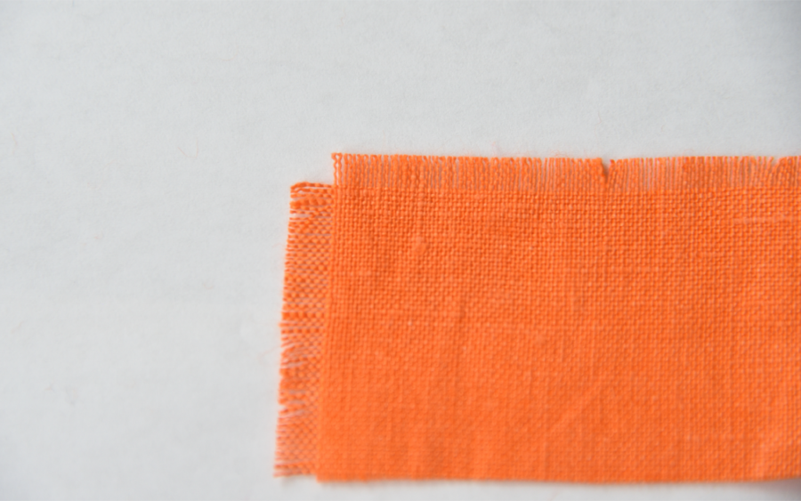 タテ糸とヨコ糸に同色のオレンジリネン糸を使い、くすみの少ないオレンジに仕上げました。