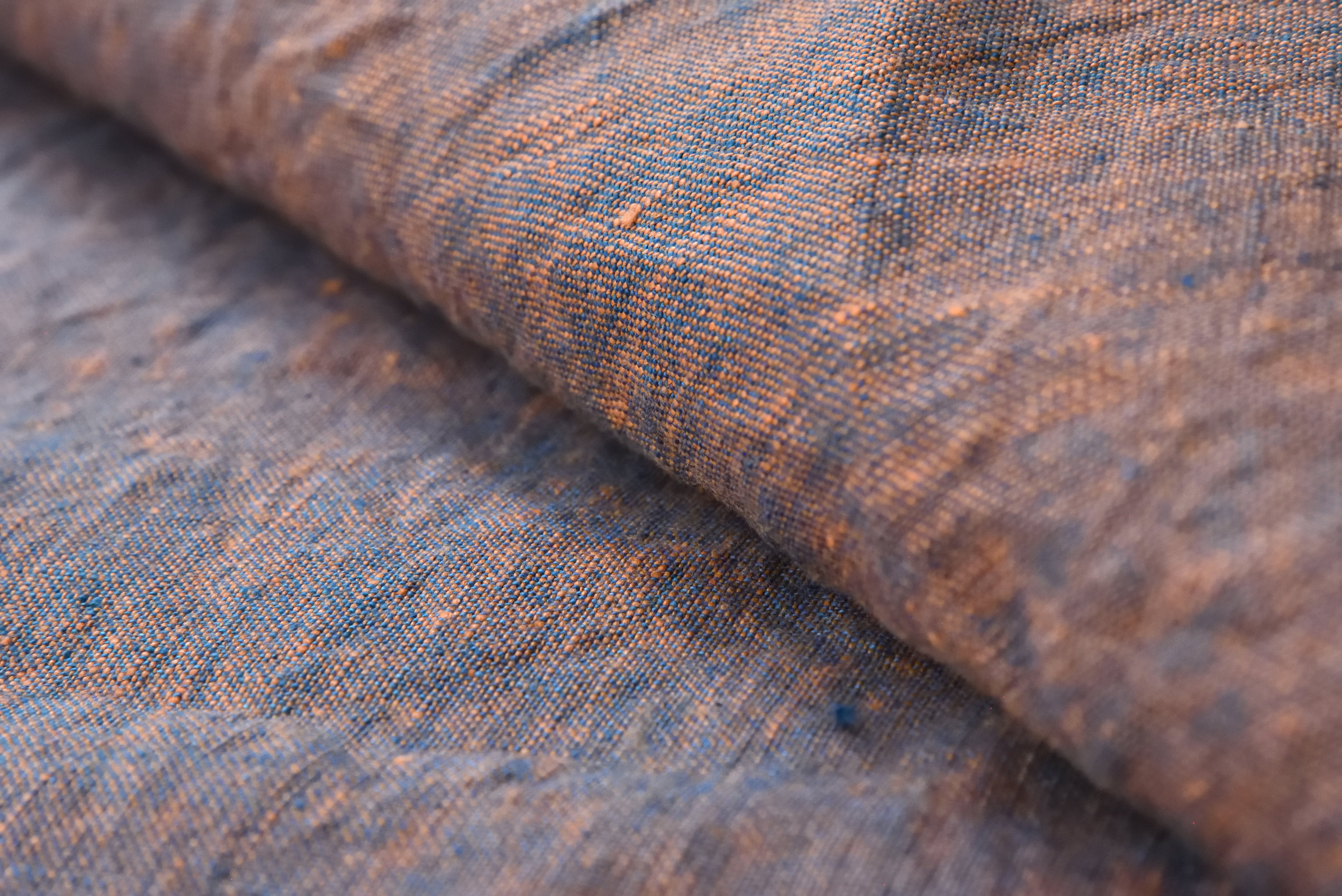 普通地 プレウォッシュリネン オレンジ xターコイズブルー