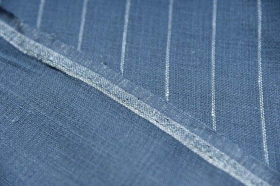普通地 リネン 二重織 ストライプ ポンドブルー