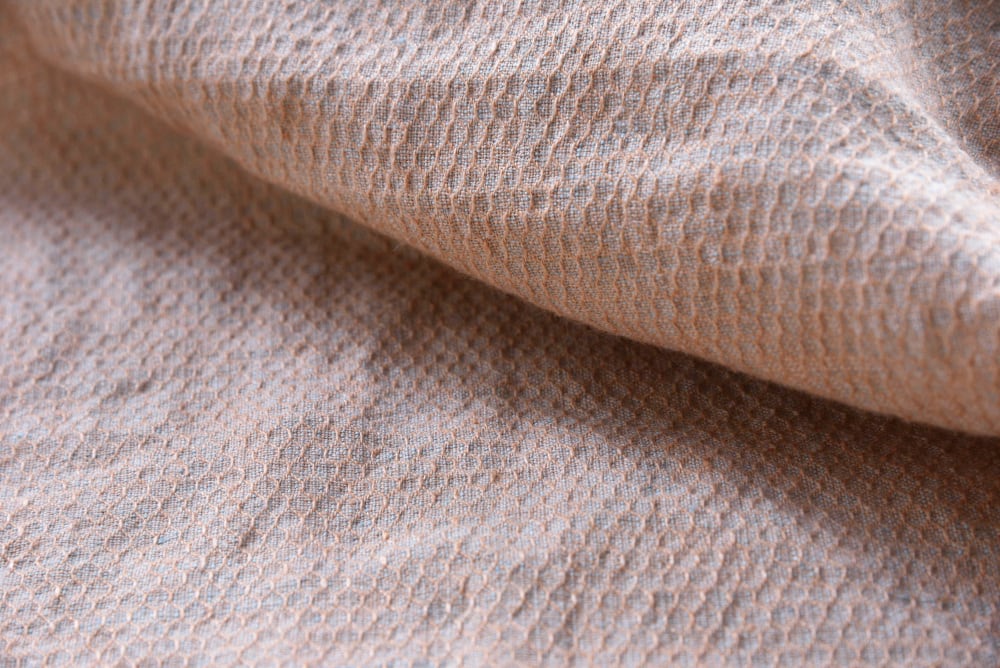 経糸はリネン100%、緯糸にリネンとウールの糸を使い、冬に活躍するリネンをオリジナルで作りました。