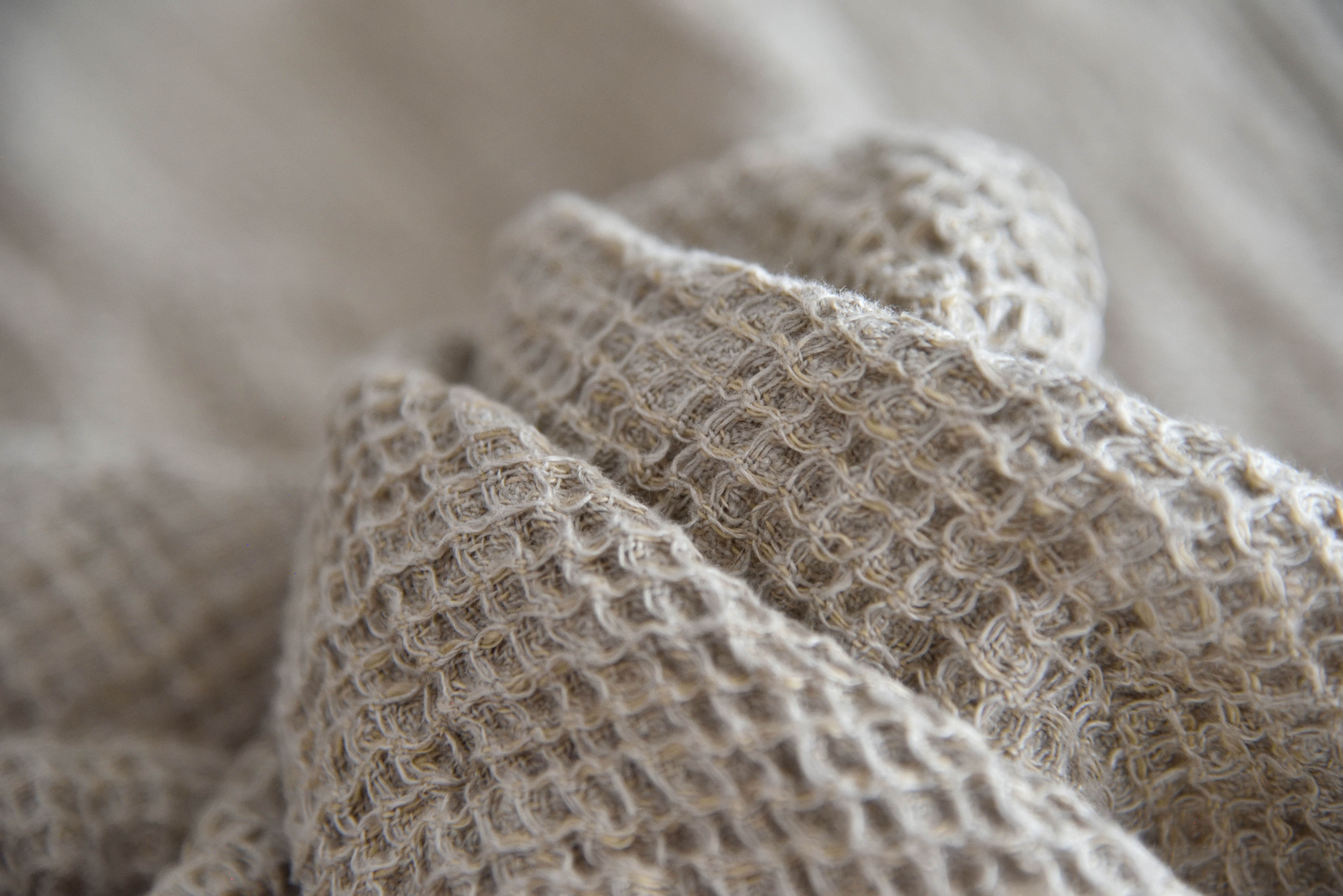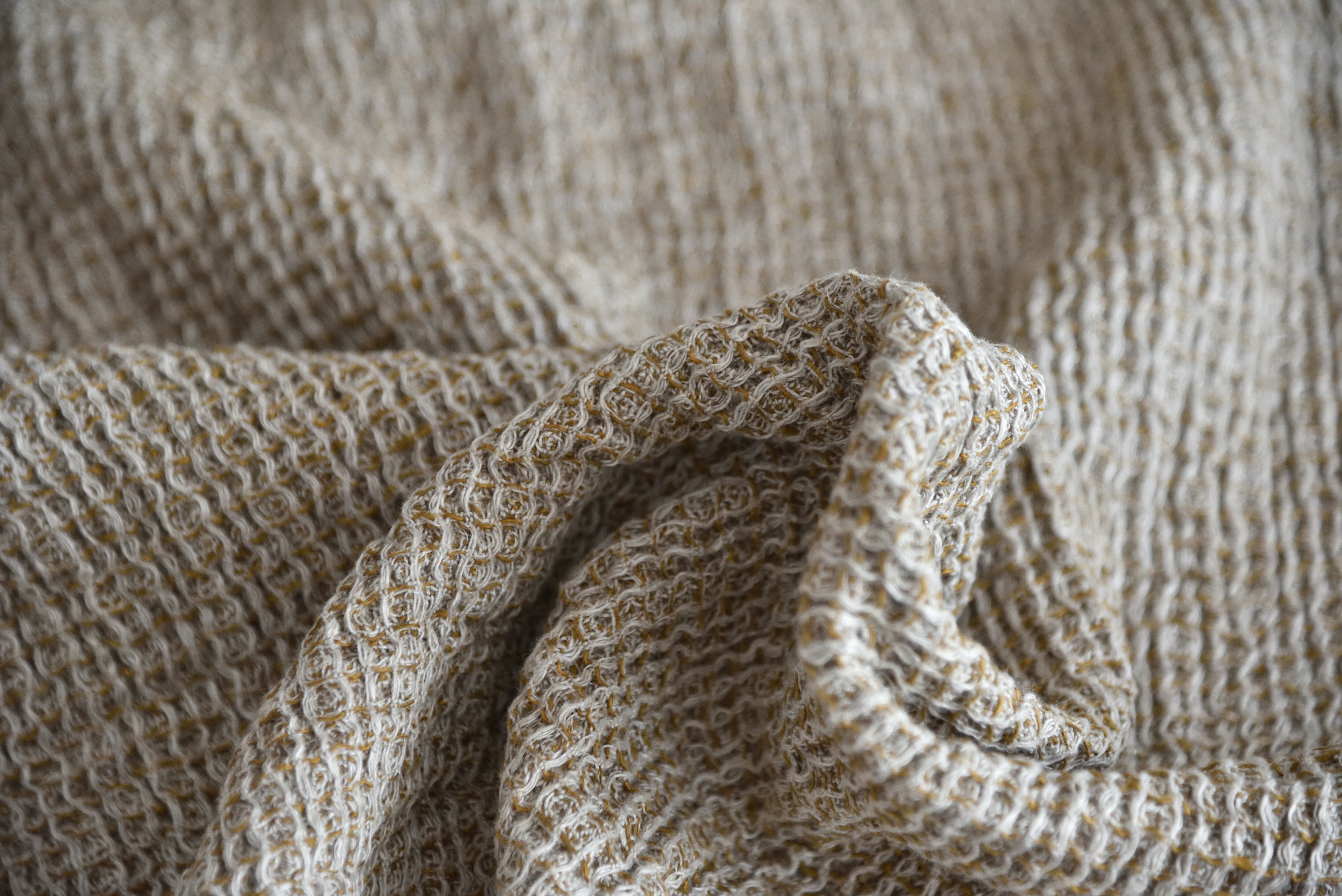 リネン100%のワッフル生地。